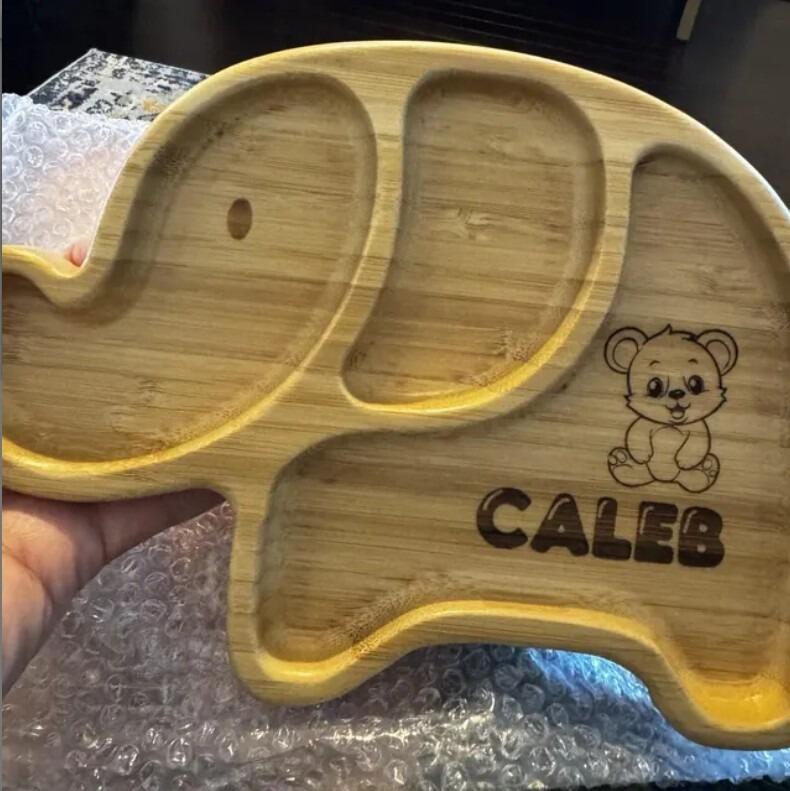 Introducing the Sincerely Enzi Personalized Bamboo Elephant Suction Plate — a cute and practical feeding solution for babies and toddlers. Designed with parents in mind, this eco-friendly plate helps reduce mess while encouraging self-feeding and independence. Encourage your little one to learn all the different animals while enjoying a meal.